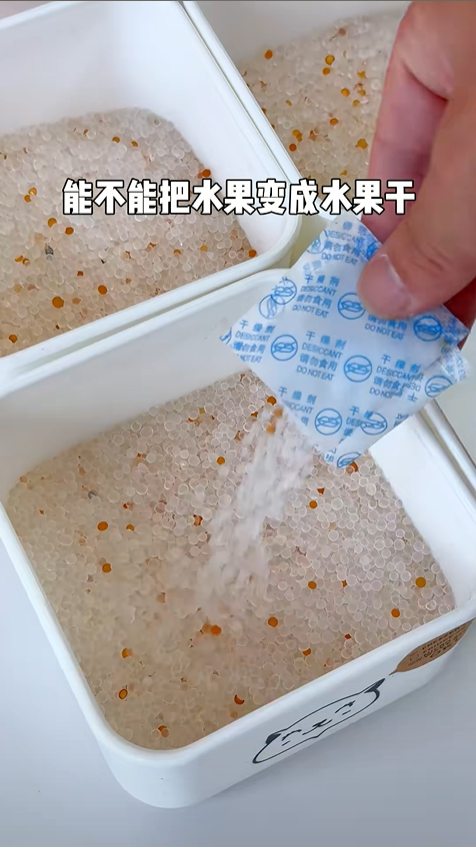 這個念頭一出現就停不下來。市面上賣的水果干雖然好吃,但要么添加大量糖、防腐劑,要么價格偏高,自己做的話健康又實惠。可烤箱費電、干果機需要額外花錢買,而干燥劑幾乎是 “零成本” 的生活廢棄物,要是真能成功,簡直是懶人自制果干的福音。
