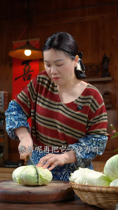 處理包菜是第一步,也是最關鍵的一步,很多人腌菜失敗,都是因為這一步出了問題。先把包菜放在干凈的案板上,用手輕輕剝掉外層的老葉子、黃葉,這些葉子口感粗糙,還可能帶有雜質,剝掉后只保留里面緊實脆嫩的菜心部分。接著用刀把包菜一分為四,切成大小均勻的塊狀,這里一定要記住一個核心要點:切好的包菜先不要清洗。很多人習慣切菜前先清洗,覺得更干凈,但包菜一旦沾水,里面就容易藏住生水,腌制的時候不僅會稀釋鹽分,影響包菜出水,還會滋生雜菌,導致腌菜發霉、變質,這也是農家腌菜的老規矩,一定要牢記。