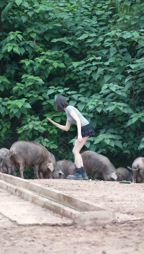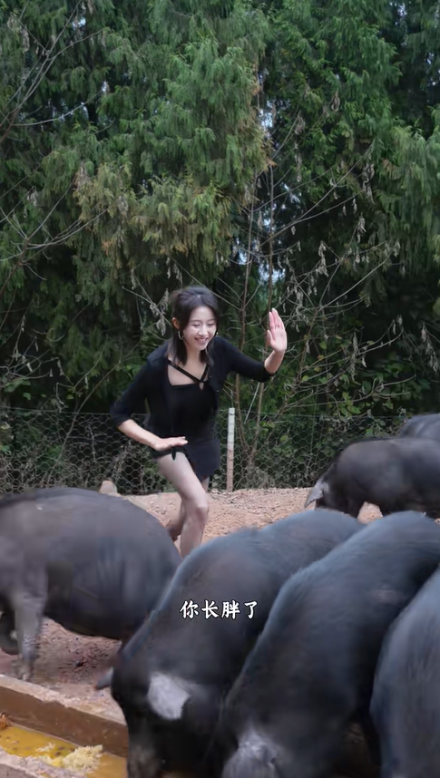 日 過去, 那 連豬圈 敢 城市姑娘,變成 熟練拌料、接 、防疫 “養豬 ”。 始用抖音記錄 養豬 活:清晨帶著豬群 山,陽 透過樹葉灑 ;午后 院 里切紅薯藤,母親 旁擇菜,父親修理農具;傍晚 著豬群吃飽喝足, 山 里悠閑散步。 分享跑山豬 日常,講解跑山豬和圈養豬 區別,也 偶爾 視頻里穿插幾 瑜伽動作,網友們戲稱 “最接 瑜伽 ”。