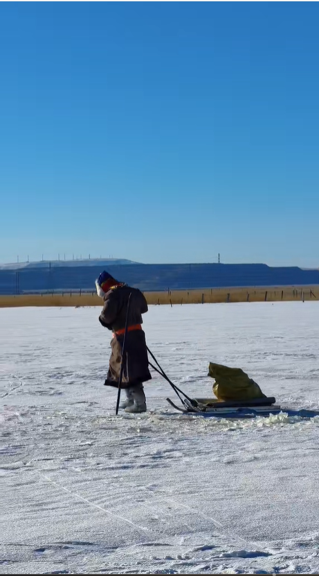 河邊的風更烈,吹得人睜不開眼,光禿禿的樹枝在風中發出“嗚嗚”的聲響,像是在訴說著冬日的嚴寒。河面上的冰結得又厚又硬,踩上去發出“咯吱咯吱”的脆響,我呵出一口白氣,瞬間便消散在冷空氣中。雙手早已凍得通紅發麻,握著鑿冰的工具都有些費勁,好不容易鑿下幾塊厚實的冰,用袋子裝好往家扛,冰冷的觸感透過袋子滲進來,凍得胳膊一陣發麻,心里只盤算著趕緊弄完回家,還得給家里的羊添點草料。