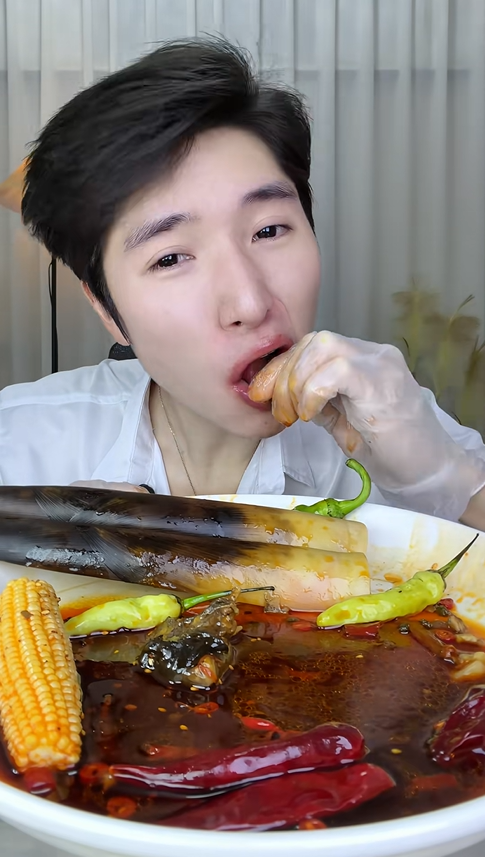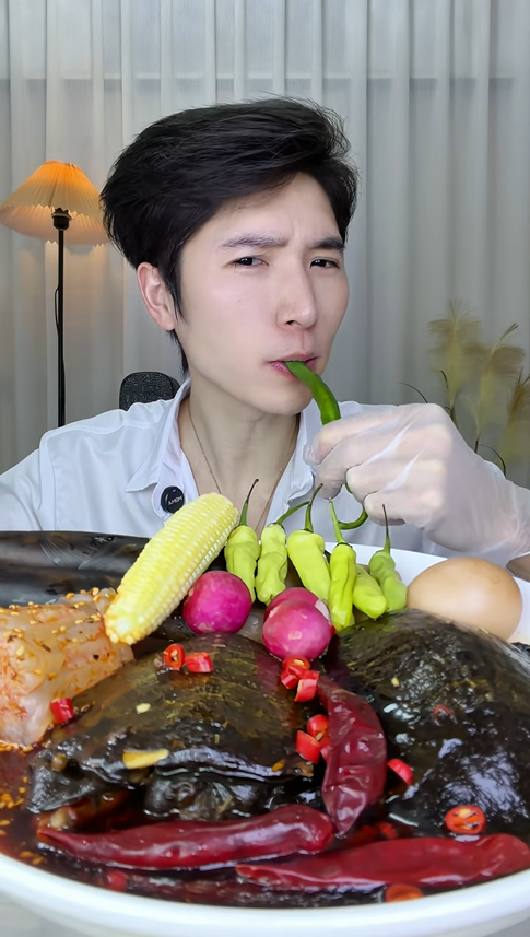除了麻辣甲魚,視頻里的活珠子也讓人眼前一亮。作為同樣極具爭議的美食,活珠子的鮮美與營養被他展現得淋漓盡致。搭配著辣椒一起品嘗,鮮美的湯汁混合著霸道的辣味,那種獨特的風味讓人回味無窮。他一邊品嘗,一邊與觀眾分享美食的樂趣,溫柔的解說中偶爾夾雜著被辣到的吸氣聲,這種真實不做作的風格,正是他圈粉無數的原因。