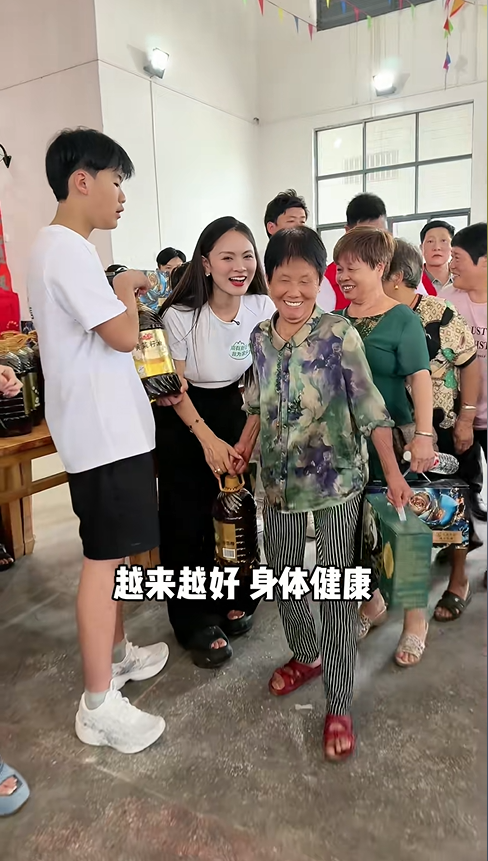 剛到村里,就看到鄉親們早早等在空地上,熱情地鼓掌歡呼,喊著歡迎我們回家,那一刻,一股暖流瞬間涌遍全身。我站在人群前,握著話筒跟大家說著心里話,這些年,從一個外鄉人到被全村人當成家人,叔伯嬸娘、爺爺奶奶的照顧和包容,我一直記在心里。大女兒能考上新加坡管理大學這樣的好學校,離不開鄉親們多年來的祝福與支持,這份情,我們一家人始終惦念。這次回來,我們特意準備了十包油和米,還有自家品牌的燕窩粥,更為村里的孩子們準備了各式各樣的書包,小一點的孩子配小巧的書包,大孩子配大號的,男孩子是清爽的藍色,女孩子是溫柔的粉色,只想讓每個孩子都能收到合心意的禮物。