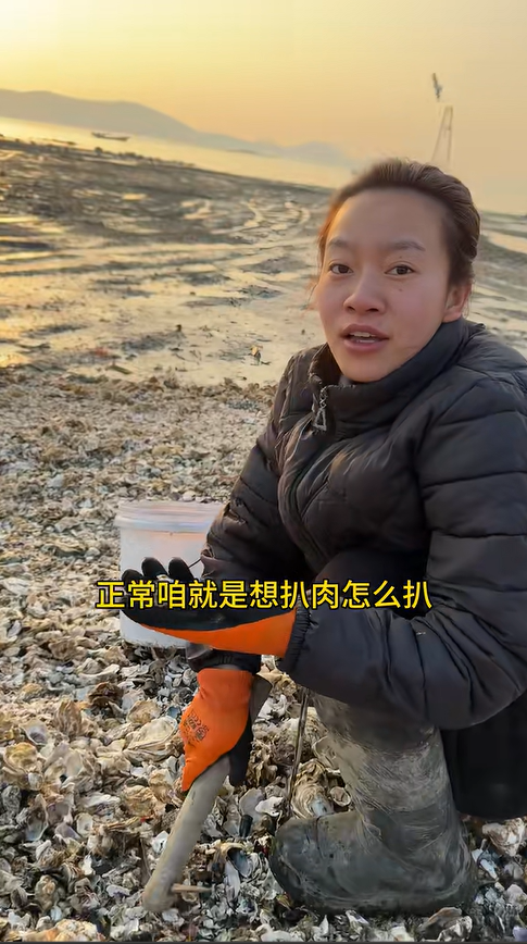 撿著撿著,妹妹突然驚呼一聲,在一堆生蠔豆里翻出了一個 “大貨”,這是今天撿到的第一個大生蠔,個頭比巴掌還大,殼厚肉實,拿在手里沉甸甸的。我們仨圍著這個大生蠔看了半天,原本沒指望能撿到大家伙,這一個就足夠驚喜了。賢姐拎著大盆,笑著說:“過年第一響,必須得爆盆!” 果然,越往灘涂深處走,生蠔越多,還有不少小碗大小的生蠔,個個飽滿,一抓就是一把,歡聲笑語在海邊回蕩,連海風都帶著甜甜的味道。老大在另一邊的礁石上撿大生蠔,回頭時手里的盆也快滿了,她撿的大生蠔個個品相極佳,看得我們羨慕不已,幾個人你一言我一語,互相打趣著,手里的動作卻沒停,不多時,我的小桶就滿滿登登,徹底爆桶了。