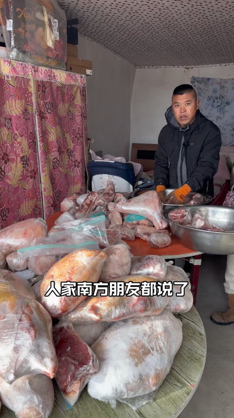 而這場開春的 “倒騰大戰”,更是東北人對氣候的精準把握。東北的立春從不是真正的 “春暖花開”,而是氣溫過山車的開始,白天零上、夜間零下,朝陽坡的冰缸化得飛快,背陰坡的卻依舊堅硬,這種 “乍暖還寒” 的天氣,讓冰缸從 “天然冰箱” 變成了凍貨的 “風險區”。東北人一年要折騰兩趟:上凍時把凍貨挪到冰缸,利用天然低溫省電費;開化時再搬回冰箱,防止食材解凍變質。這看似繁瑣的操作,是一代代東北人摸索出的生活技巧,是與自然相處的默契。就像福福兔說的,“再晚兩天,肉就壞了”,這份果斷與麻利,是東北人在寒來暑往中練就的生活本領。