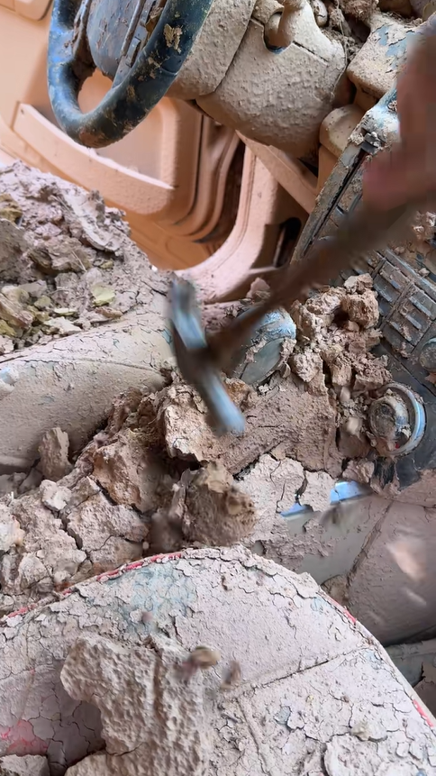 剛把這輛路虎開回家,先繞著車子轉了一圈,外觀上的問題一目了然:車身覆蓋著厚厚的灰塵和泥土,車漆失去了原本的光澤,多處還有細微的劃痕;輪轂上的銹跡和剎車粉結在一起,黑黢黢的一片;大燈也因為常年的日曬雨淋,蒙上了一層氧化層,顯得霧蒙蒙的。打開車門,內飾更是讓人頭疼,真皮座椅上有明顯的污漬和磨損,縫隙里卡著各種灰塵和碎屑,地毯被踩得發黑,中控臺的塑料件也失去了光澤,空調出風口里的灰塵都快堆成小山了,整個車內還飄著一股淡淡的霉味。但這些問題都難不倒我,老車翻新,講究的就是耐心和細致,從外觀到內飾,從清潔到養護,一步一步來,定能讓它脫胎換骨。