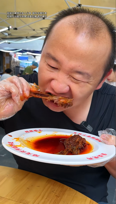 老板被我的底氣折服,索性直接端來十個鴨頭,還當場給我撒上滿滿的辣椒,紅亮的辣椒鋪在鴨頭上,看著格外誘人。周圍的客人見狀都圍了過來,紛紛拿出手機拍照,想看我能不能挑戰成功。我拿起鴨頭大口開吃,一口一個,鴨頭的軟糯和辣椒的鮮辣完美融合,偶爾喝上一口湯汁,濃郁的辣味瞬間在嘴里炸開,嘴麻乎乎的卻格外過癮,剛開始的一絲辣味稍縱即逝,完全在我的承受范圍之內。
