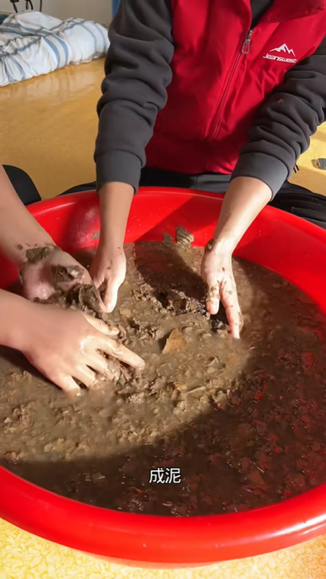 第一步,是紙漿的制作,這是整個工藝的基礎,最考驗耐心。先把廢舊紙殼撕成拇指大小的碎塊,不能太大也不能太小,太大泡不透,太小揉搓時容易散。接著找一個干凈的大盆,把碎紙殼全部放進去,倒入足量清水,確保每一塊紙殼都被浸沒,然后靜置浸泡一晚。這一夜的等待至關重要,硬邦邦的紙殼會慢慢吸飽水分,變得軟爛易揉,就像被時光軟化的舊日子,溫柔又有韌性。泡好后,就到了費力氣的揉搓環節,沒有料理機、沒有破壁機,全靠雙手反復揉捏,家里有搓衣板的,還能借著搓衣板的紋路,把紙殼搓成細膩均勻的紙漿泥,直到看不到完整紙片,摸起來軟糯無硬塊才算合格。擠掉多余水分,攥成緊實的紙團,紙漿就初步成型了。
